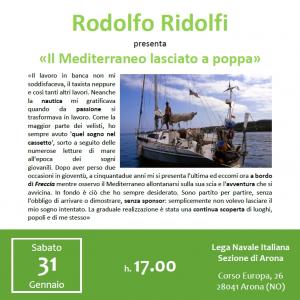 Non perdete il prossimo appuntamento sabato 31 gennaio alle ore 17 con Rodolfo Ridolfi e il suo “Il Mediterraneo lasciato a poppa”. Gli Incontri sono aperti al pubblico e sabato 14 febbraio e 7 marzo potremo ancora ascoltare gli scrittori Giorgio Daidola con “Viaggio in Mediterraneo. Immagini, incontri, riflessioni di un velista curioso” e Stefano Malagoli con “VHF-DSC a portata di voce in mare per navigare sicuri con la radio di bordo”.