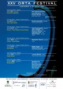 La 25ª edizione di Orta Festival, numero significativo, a testimonianza del valore della rassegna e dell’apprezzamento da parte del pubblico, prevede sette appuntamenti, a partire da venerdì 4 luglio sino a domenica 20 luglio; ripartiti nelle splendide cornici della Basilica di San Giulio, sull’isola omonima, e della chiesa di Santa Maria Assunta. Si alterneranno formazioni orchestrali da camera di diversa composizione e solisti, che interpreteranno brani di autori classici e jazz (si veda il programma allegato).