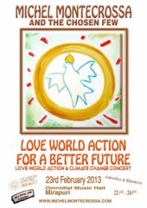 Armeno - Coiromonte - Sabato 23 febbraio avrà luogo presso l’Omnidiet Music-Hall a Mirapuri-Coiromonte il ‘Love World Action For A Better Future Concert‘ con Michel Montecrossa and The Chosen Few. Il concerto ad ingresso gratuito si svolgerà dalle ore 22. Genere: Acoustic, Dance, Cyberrock, Electronica. Ulteriori informazioni & videos: www.MichelMontecrossa.com
