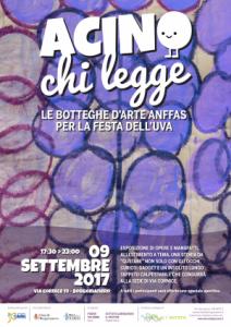 Borgomanero - Sabato 9 settembre all’Anffas di Borgomanero sarà tempo di “Acino chi legge”; evento ideato e promosso da Anffas Borgomanero Onlus con il patrocinio del Comune di Borgomanero, in occasione della Festa dell’Uva 2017. Dalle 17.30 fino a fine serata, il cortile della sede di via Cornice 19 a Borgomanero, sarà totalmente trasformato in una vigna “sui generis”, grazie ad un allestimento a tema. Foglie di vite, grappoli d’uva, ma anche lanterne luminose, bottiglie con etichette speciali e foglie realizzate in ceramica ravviveranno il cortile dove gli ospiti potranno entrare per visitare una parte del Centro e, contemporaneamente, trovare diversi gadget realizzati, appositamente per l’occasione, dai partecipanti ai Laboratori d’Arte Anffas condotti da Lucia Caldognetto (portachiavi a forma di acino, spille a bottoni con frase “ad hoc”, foglie di ceramica con candeline augurali, ciotoline, tappi per bottiglia… ).