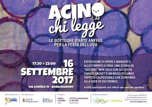 Borgomanero - A causa delle pessime previsioni meteo per questo sabato 9 settembre, l'evento "Acino chi legge" promosso da Anffas Borgomanero è rimandato a sabato 16 settembre (stesso luogo, stesso orario, stesso programma: dalle 17.30 alle 23 in via Cornice 19. "Scusandoci per l'inconveniente - affermano gli organizzatori dell'evento benefico - ma nella speranza di realizzare l'evento a cui tanto abbiamo lavorato nelle condizioni migliori possibili; vi aspettiamo il 16 settembre nella sede dell'Anffas Borgomanero per brindare con noi!"