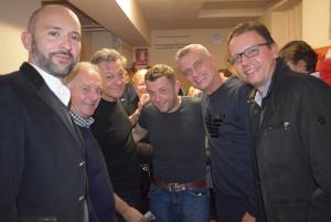 I Legnanesi sono, da sempre, testimonial della Palzola in tutta Italia e, anche nella serata della prima, non hanno mancato di sottolinearlo posando con i vertici del Caseificio di Cavallirio, produttore del famoso erborinato, per la classica foto ricordo.