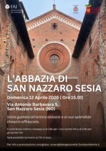San Nazzaro Sesia - La Delegazione FAI di Novara è lieta di invitare il pubblico a partecipare all’evento “L’Abbazia di San Nazzaro Sesia”, delle esclusive visite guidate all’interno dell’abbazia, in programma domenica 12 aprile a partire dalle ore 15 su turni. Situata nel cuore del territorio novarese, l’abbazia rappresenta uno straordinario esempio di architettura religiosa medievale, immersa in un contesto paesaggistico di grande suggestione. I partecipanti avranno l’opportunità di scoprire la storia secolare del complesso monastico e di ammirare il suo splendido chiostro affrescato, testimonianza preziosa di arte e spiritualità. In conclusione si avrà anche l’esclusiva possibilità di vedere una parte privata dell’abbazia (grazie alla disponibilità del signor Castaldi) ove si trovano le opere dell’artista Daniela Grifoni. Le visite si svolgeranno su turni e permetteranno ai visitatori di vivere un’esperienza immersiva, accompagnati dai volontari del FAI che racconteranno curiosità, aneddoti e dettagli storico-artistici del sito.