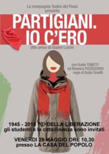 Romagnano Sesia - “Partigiani. Io c’ero” in occasione del 70° della Liberazione venerdì 29 maggio ore 10.30 alla Casa del Popolo a Romagnano "Partigiani. Io c'ero" con Guido Tonetti e Eleonora Pizzoccheri. Testi di Gianni Lucini, regia di Guido Tonetti. Primi anni Settanta. In un locale pubblico si incontrano Monica, giovane studentessa universitaria impegnata nei movimenti di contestazione e Mario, ex partigiano. Tra i due nasce una discussione che parte dalla contrapposizione e dal confronto sulla Resistenza con la ragazza che rimprovera aspramente la generazione dell'uomo per non aver fatto abbastanza e soprattutto per non aver saputo cambiare profondamente la società italiana. Pacate e non prive di ironia le repliche di Mario accompagnano la ragazza e lo spettatore in un periodo complicato come quello della Resistenza e di una battaglia politica e culturale non conclusasi con la Liberazione. Tra dialoghi nei quali si alternano momenti drammatici e brillanti, la Resistenza rivive con tutta la sua carica di passione, sacrificio e impegno civile. Venerdì 29 maggio ore 10.30 Casa del Popolo Romagnano Sesia (Rock 'n Roll Arena) in via Spianata Fiera 3. L'evento è organizzato dalla Sezione Anpi di Romagnano Sesia con il patrocinio del Comune in occasione del 70° della Liberazione. Assisteranno allo spettacolo le classi maggiori dell'Istituto Bonfantini e del Liceo Artistico. L'evento è aperto a tutti.