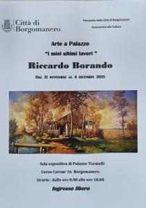 Borgomanero - Da venerdì 21 novembre al prossimo giovedì 4 dicembre il pittore Riccardo Borando presenterà le sue ultime opere pittoriche più una serie di disegni presso la sala espositiva di Palazzo Tornielli, sede del Municipio di Borgomanero in corso Cavour 16 in occasione della manifestazione 'Arte a Palazzo'. La mostra si può visitare dal lunedì al venerdì dalle ore 8 alle 18. Ingresso libero.