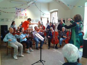 Borgomanero - Al Centro Incontro Anziani di Borgomanero, il 26 maggio scorso, si è tenuto un pomeriggio di promozione delle abilità artistico - musicali degli anziani che frequentano il “Centro Incontro Anziani”, gestito dall’Auser Borgomanero. Tutto quanto per verificare la disponibilità ad intervenire in una futura orchestra intergenerazionale, da costruire insieme anziani-giovani. Durante il work shop sono stati presentati brani di musica classica di noti autori: “I quadri di un’esposizione” di Musorgskij; “Trepak” (danza russa) di Chaikosky; “La marcia” dallo Schiaccianoci di Chaikosky e “Peer Gynt” di Grieg. Ogni partecipante al centro incontro poteva esprimersi attraverso uno strumento musicale a disposizione (violino, violoncello, contrabbasso, arpa, grande percussione, piccola percussione) ed inserirsi nell’esecuzione di un brano in modo concertato, sotto la direzione dell’insegnante Chiara Stoppani dell’Associazione “Emisferi musicali” , che ha progettato l’iniziativa con l’assistente sociale comunale, Maria Carla Moia. L’attività, nell’ambito della gestione del centro incontro da parte dell’Auser, presieduto da Maria Bonomi, è proposta dall’Assessorato Servizi Sociali, Maria Emilia Borgna e sostenuta dalle operatrici socio-sanitarie, Cristina Bicego e Isabella Rametta insieme ai volontari del servizio civico comunale e dell’Auser di Borgomanero.