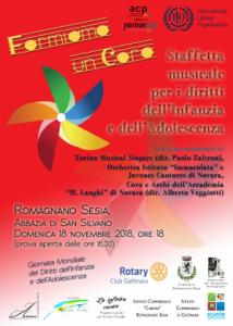 Romagnano Sesia - Domenica 18 novembre alle ore 18 in abbazia S. Silvano. Presente il Torino Muscial Singers, primo coro specializzato nel repertorio musical in Italia, l’orchestra della scuola primaria e media dell’Istituto “Immacolata” di Novara e il coro da camera e ensemble d’archi dell’Accademia “M.Langhi”. Si terrà a Romagnano Sesia la quarta edizione della “staffetta musicale per i diritti dell’Infanzia e dell’Adolescenza”. Domenica 18 novembre alle ore 18 in Abbazia S. Silvano si esibirà il Torino Musical Singers, primo coro specializzato nel repertorio musical in Italia insieme all’orchestra della scuola primaria e media dell’Istituto “Immacolata” di Novara, al coro da camera e ensemble d’archi dell’Accademia “M.Langhi”. Il concerto è sostenuto dall’Assessorato all’Istruzione del Comune di Romagnano Sesia con il patrocinio del Rotary Club Gattinara, Istituto Comprensivo “Curioni”, Istituto Comprensivo di Gattinara, Istituto Sacro Cuore. La manifestazione rientra nel calendario di “CANTOACANTO”, programma di eventi formativi, concerti e conferenze, proposti tra l’anniversario della Convenzione dei Diritti dell’Infanzia (20 novembre) e la Giornata Internazionale della Solidarietà Umana (20 dicembre) per una cultura più attenta alla condizione minorile, allo svantaggio educativo ed economico, alla giustizia sociale. «Il titolo e il motto - “il canto ti è accanto” - si riferiscono all’intenzione di chi si dispone “fianco a fianco”, per testimoniare in prima persona e con la propria “voce” i sentimenti di “prossimità” dell’essere umano e l’attitudine ad essere “vicini” gli uni agli altri.» Spiega Carlo Senatore, insegnante e musicista direttore di coro, autore del progetto: «CANTOACANTO» si propone di valorizzare il rapporto tra la Bellezza dell’Arte - un’emozione in grado di generare conoscenza - e la Coscienza sociale, che la Musica nelle sue infinite combinazioni con la Letteratura, il Teatro, la Danza e ogni altra forma di ricerca e d’espressione creativa è in grado di rinnovare stimolando la sensibilità educativa, la consapevolezza pubblica e l’iniziativa sociale».