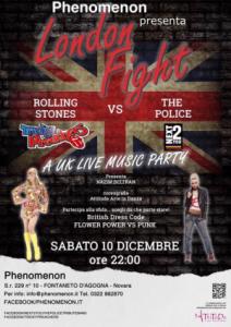 Fontaneto d'Agogna - Rolling Stones oppure Police? Mick Jagger oppure Sting? Un bel duello, anzi un... London Fight quel che viene proposto domani sera, sabato 10 dicembre, a partire dalle ore 22 al Phenomenon di Fontaneto d'Agogna. I novaresi Tricky Preachers approdano sabato 10 dicembre sul palco del Phenomenon. I Tricky Preachers si esibiranno nel mitico locale la stessa settimana di Francesco Guccini, gli Eiffel 65 e Noemi. Una bel traguardo per questa band nata cinque anni fa come tributo ai Rolling Stones e che dopo qualche anno di gavetta ha iniziato a raccogliere sempre più consensi, aiutata in questo anche dai Rolling Stones che continuano a stupire il mondo con tour, dischi nuovi (e appena uscito il nuovo album) e anche figli come quello che Mick Jagger ha appena avuto). I Tricky Preachers sono in nove e sul palco assicurano un spettacolo ad altissima energia. Lo show di sabato sera al Phenomenon è una prima e si chiama London Fight, la battaglia di Londra per la musica rock, dagli anni'60 con l'esordio dei Rolling Stones, agli anni'70 e '80. La sfida tra Rolling Stones e Police, tra figli dei fiori e punk. Ambientazione londinese e sul palco con i Tricky Preachers anche i NeXT 2You (Police Tribute Band), oltre a Nazim Beltran che sarà il presentatore londinese ed alle coreografie di Attitude Arte e Danza. Insomma si preannuncia un grande spettacolo.