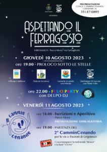 Venerdì 11 la camminata gastronomica con il ‘2° CamminCenando’, grazie al prezioso aiuto di varie associazioni del paese che hanno messo i loro spazi a disposizione. Partenza alle 19 dal Parco Mora con successive soste in 4 diverse postazioni per gustare dall’antipasto al dolce accompagnati dalla solita ‘brusca’, e non solo, anche da un gruppo musicale su palco ‘mobile’ che seguirà nelle varie tappe.