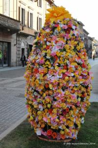 Borgomanero - Trecentocinquanta nastri. Più di mille fiori di seta. Due metri e trenta di altezza, per 90 centimetri di circonferenza. Sono questi i dati da Guinnes di primati del bellissimo uovo di Pasqua posato sull’aiuola all’ingresso di corso Cavour. L’abilità del fiorista e sessanta ore di lavoro hanno fatto… fiorire il corso. Un spettacolo piacevole per l’occhio che incontra con simpatia un caleidoscopio di colori. Il tutto retto da uno struttura di metallo, collocata dolcemente all’interno dell’aiuola. Il primo impatto è di stupore e meraviglia, ma colpisce soprattutto la pazienza, la delicatezza e la fantasia con il quale è stato realizzato. "E’ bello per la nostra città – ha detto il Sindaco Anna Tinivella – vedere la realizzazione di opere d’arte e fantasia che oltre ad abbellire l’ingresso del centro storico, danno un particolare tocco di fantasia e colore alla Pasqua che si avvicina".