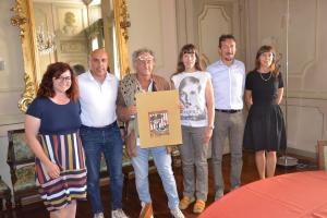 Borgomanero - Un calice colmo di grappoli d’uva. Un piatto con tapulone e polenta fumante. Il tutto “avvolto” nella classica carta marrone da “macelleria”. Sotto la scritta “70esima Festa dell’Uva”. E’ il nuovo e semplice logo della edizione, numero settanta, della festa settembrina. Lo ha realizzato Marco Preti, interior designer. Il logo ufficiale è stato presentato nella mattinata di mercoledì 25 luglio nella sala degli Specchi a Palazzo Tornielli. Presenti, oltre al Sindaco Sergio Bossi, gli assessori Francesco Valsesia ed Elisa Zanetta oltre alla presidente Pro Loco Stefania Zoppis e alla funzionaria comunale Angela Mora.