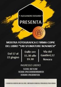 Novara - Alessandro Berardi, consigliere comunale presso il Comune di Mandello Vitta (NO) e scrittore\autore\fotografo spiega che "dal 17 al 22 giugno dalle ore 15.30 alle 19.30 presso la location sita in Via dei Gautieri 12 a Novara, avrà luogo un evento di natura artistico-culturale: una mostra fotografica (più qualche opera d’arte digitale) e firma copie del libro 140 Sfumature Novaresi. L’evento, è incentrato sul territorio novarese e sull’ambiente: alcuni scatti che vedrete in esposizione, sono tratti proprio dal mio libro fotografico (attraverso il quale, non solo ho cercato di far conoscere e valorizzare il nostro territorio), ma allo stesso tempo ho provato a sensibilizzare l’opinione pubblica, lanciando un messaggio contro l’inquinamento. Purtroppo, a causa dell’inciviltà dell’uomo, il nostro pianeta soffre per l’inquinamento di mari, laghi, fiumi e terreni, e per il rischio estinzione di alcune specie animali. Bisogna imparare ad avere rispetto e cura dell’ambiente e delle creature che lo popolano, non solo per noi stessi, ma anche per le generazioni future”.