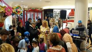 Novara - Bagno di folla per l'Associazione Re Biscottino onlus al Centro Commerciale San Martino di Novara, dove si è aperto ufficialmente il carnevale gaudenziano. Tanti i bambini e i genitori venuti a festeggiare assieme alla corte di Re Biscottino e della Regina Cunetta, in occasione del primo dei quattro appuntamenti organizzati in città. Ad animare il pomeriggio le giovani allieve della scuola di ballo "Danza Viva" di Sabrina Paoletti, la scuola di circo e di teatro Dimidimitri di Novara, il cantante Gabriel Bolla, il duo Carmen e Lele e il gruppo di ballo latino-americano "Calor Latino". Pomeriggio all'insegna del divertimento, con simpatiche gag, barzellette, caramelle e dolci per tutti e con un inatteso siparietto dedicato alla poesia dialettale grazie al contributo del poeta novarese Antonio Ferrari, che ha declamato alcuni dei suoi versi più celebri.