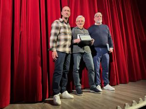 “A Roberto, per l’impegno, la dedizione e la grande passione dimostrati nel corso di tanti anni di volontariato”. Queste le parole dello staff del teatro e di tutta la comunità di Pernate incise sulla targa. «47 anni interrotti di volontariato di cui 40 dedicati a questo posto – ha esordito Brustia –. Che in passato, oltre a sala teatrale, è stata sala cinematografica. Roberto ha vissuto gli anni della bobina, per passare ai VHS e poi ai CD. C’era quando le sedie erano in legno e quando il biglietto costava 3.000 lire. Ha applaudito a intere generazioni di bambini dell'asilo che su questo palco si sono esibiti per la prima volta. Negli anni il teatro è stato chiuso e riaperto, si sono susseguiti tanti volontari e tre sacerdoti. Ogni anno un nuovo bilancio, ogni anno una nuova programmazione. Sono cambiate le abitudini, passati i decenni. Sono stati costruiti i nuovi camerini, modernizzati gli impianti luce e audio. E poi… chi se la dimentica, c'è stata una pandemia. E poi c'è stato un giorno maledetto, quando ha dovuto salutare troppo presto il suo amico e compagno d'avventura Angelo. E da lì un nuovo inizio. Insomma una storia lunga 40 anni fatta di passione, di tempo dedicato, di ambizione, di testardaggine, tipica di chi è nato il 7 giugno, ma soprattutto di tanto cuore e di un amore sincero verso la gente, la comunità e il nostro Paese. Pertanto, grazie a lui questo teatro è diventato un esempio più unico che raro, un punto di riferimento sociale e culturale per tutti noi. Ne prendiamo il testimone, consapevoli del delicato compito, sperando di riuscire a fare bene e ispirandoci ovviamente al suo virtuoso esempio». Un emozionato Roberto Boieri non voleva salire sul palco a ritirare la targa. Alla fine si è convinto e dal pubblico è partito un calorosissimo applauso per il tempo e, soprattutto, per l’affetto che ha dedicato al suo amato teatro. Una vera colonna del Sant’Andrea di Pernate.