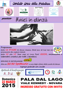 Novara - L’associazione “Unione Genitori Italiani contro il tumore dei bambini Sezione di Novara ONLUS”, impegnata nella lotta contro le malattia oncoematologiche pediatriche, in collaborazione con le scuole di danza “Danza Viva a.s.d.” diretta da Sabrina Paoletti, “Città della Danza” diretta da Chiara Bonelli, “Centro Danza Buscaglia” diretta da Donatella Vaccaro, Happy Days diretta da Irene Stangalini, ed il nascente comitato “Amici della Pediatria”, propone il Progetto “Amici in Danza”: uno spettacolo di danza organizzato per sostenere le attività delle associazioni che operano nella Pediatria dell’Ospedale Maggiore di Novara.