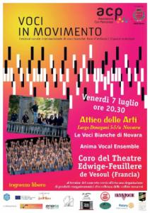 Ad accogliere a Novara i cinquanta giovani cantanti dell’ensemble “Justiniana” del Théâtre Edwige Feuillère de Vesoul (Francia) vi saranno le Voci Bianche di Novara e l’ensemble vocale ANIMA, fondato nel 2007 da Carlo Senatore insieme a coristi provenienti da vari comuni della Valsesia e della pianura novarese, impegnato dal 2016 con il Rotary Club di Gattinara in un originale programma per la formazione di un coro di alunni, insegnanti e familiari presso gli Istituti Comprensivi di Gattinara (VC) e Romagnano Sesia (NO) dal titolo “Lo Infinito Canto”.