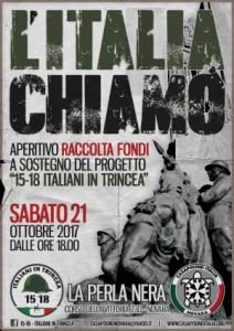 Novara - Sabato 21 ottobre, presso La Perla Nera (Novara, Corso della Vittoria 23D) avrà luogo un aperitivo di raccolta fondi per "15-18 Italiani in Trincea". "Con questo progetto - spiegano i promotori dell'iniziativa - CasaPound Italia in occasione del centesimo anniversario della Grande Guerra si propone di riscoprire e tenere alti i valori e gli atti di eroismo testimoniati dai nostri padri un secolo or sono tra le trincee ed i reticolati. Tutto questo tramite conferenze, escursioni e azioni sul territorio. Vi aspettiamo!"