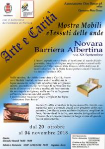 Novara - Da sabato 20 ottobre a domenica 4 novembre è possibile visitare a Novara l'esposizione "Arte e Carità" - Mostra di mobili, arredi e tessuti, di giovani artigiani peruviani , organizzata dall'Associazione Don Bosco 3A e dall'Operazione Mato Grosso (OMG). Nelle sale della Barriera Albertina (viale XX Settembre), mobili fatti interamente a mano da giovani falegnami peruviani stupiscono i visitatori per bellezza, originalità e cura dei particolari. L’artigianato femminile proveniente dalle nostre missioni sulle Ande, originali prodotti di tessitura (maglioni, tappeti, ricami) realizzati con arte da ragazze povere riunite in alcune cooperative seguite da volontarie dell’Operazione Mato Grosso.