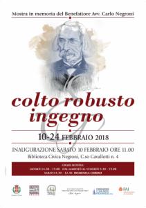 Novara - La onlus “Amici Opera pia Carlo Negroni” organizza, con il patrocinio del Comune e la collaborazione della Biblioteca civica “Carlo Negroni”, dell’Opera pia “Carlo Negroni”, della Fondazione Comunità del Novarese e della delegazione di Novara del Fai, la mostra “Colto robusto ingegno” dedicata appunto alla memoria del noto benefattore Carlo Negroni. L’esposizione, che sarà inaugurata alle 11 del 10 febbraio e che sarà visitabile fino al 24 febbraio, sarà ospitata dai locali della Biblioteca civica.
