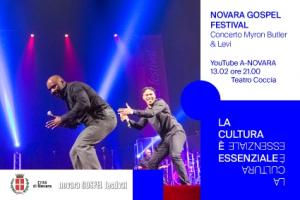 Novara - Evento online - Novara Gospel Festival: concerto Myron Butler & Levi sul canale YouTube di A-Novara https://bit.ly/3jUCRMf. Nell'ambito del progetto del Comune di Novara La Cultura è essenziale, prodotto ed organizzato dall'Associazione Brotherhood Gospel Choir, registrato al Teatro Coccia di Novara nel 2018. Concerto Myron Butler & Levi: direzione artistica: Paolo Viana, Sonia Turcato; Lead Vocals: Myron Butler; Backing Vocals: Timberlyn Butler, Tyler Walton, Taylor Walton; Band: Roberto Colussi (chitarre), Rudy Fantin (tastiere), Luca Amatruda (basso), Simone Gerardo (batteria). Brani di Myron Butler, artista Statunitense vincitore di numerosi Grammy Awards; produzione Associazione Brotherhood Gospel Choir; partnership: Regione Piemonte, Fondazione CRT, Comune di Novara, Comune di Borgomanero, Comune di Cerano, Onda TV.