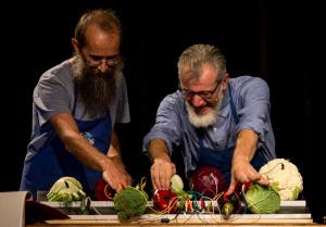 Le verdure in scena suonano, cantano, si raccontano attraverso la tecnologia di OTOTO (da Arduino). Bagini e Carlone accompagnano melanzane, carote, zucchine, cetrioli dolci, con flauti traversi, sax e chitarre per dare vita a un concerto sostenibile, un vero “live in the garden”.