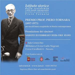 Novara - Sabato 21 febbraio alle ore 10, presso la Sala Genocchio della Biblioteca Civica Carlo Negroni Novara, si terrà la consegna del Premio prof. Piero Fornara per tesi di laurea in storia contemporanea, indetto in occasione del cinquantesimo anno dalla morte, avvenuta il primo febbraio del 1975, dell'illustre pediatra e Costituente al quale l’Istituto Storico della Resistenza di Novara è intitolato. La premiazione sarà preceduta dall'esposizione delle tre tesi selezionate che hanno riguardato la storia del Novecento. Ingresso libero fino ad esaurimento dei posti.