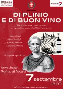 Novara - Comune di Novara, Torraccia del Piantavigna e Circolo dei Lettori promuovono giovedì 7 settembre alle ore 18, presso il Salone Arengo del Broletto di Novara, l'incontro "Di Plinio e di buon vino". Argomenti diversi ma anche connessi tra loro sarà il leit motiv della serata. “Di Plinio e di buon vino” diventerà una sorta di salotto culturale per parlare del territorio novarese e dello straordinario patrimonio vitivinicolo, partendo dalla narrazione storico-letteraria della Naturalis Historia di Plinio e in particolare del XIV libro dedicato all'enologia. Aprirà il giornalista Andrea Cionci che racconterà del rinvenimento e dell’identificazione del cranio di Plinio il Vecchio: un viaggio tra antichità classica e moderni sistemi di analisi e ricostruzione anatomica. La lettura di un brano della Naturalis Historia dove Plinio parla del novarese, introdurrà alla panoramica di Alessandro Francoli (tra geologia e vino) sui nebbioli dell’Alto Piemonte. Toccherà quindi a Marco Scardigli e Roberto Sbaratto cucire un viaggio di duemila anni, partendo da Pompei, dove è morto il naturalista e scrittore latino, alle pendici del Rosa, seguendo la traccia dei vini delle nostre terre, attraverso un viaggio letterario tutto da ascoltare. Dopo aver parlato di vino, seguirà un aperitivo per chiudere il pomeriggio sul loggiato del complesso monumentale.