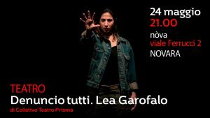 Martedì 24 maggio alle ore 21 andrà in scena lo spettacolo teatrale "Denuncio tutti.Lea Garofalo". Giovanni Gentile e Barbara Grilli raccontano del coraggio di Lea, sola contro tutta un'organizzazione mafiosa, contro una cultura radicata da secoli, contro un clan di pericolosi criminali assassini. Ma raccontano anche del cancro ndranghetista che infetta l'edilizia pubblica, l'economia e la finanza e di come la 'Ndragheta sia entrata, prepotentemente, nella stanza dei bottoni del Paese.