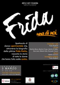 Il lavoro della File Not Found dance company ha, come motore principale, la volontà di oltrepassare i confini posti dall’appartenere ad una disciplina della danza piuttosto che ad un’altra. La formazione differente delle sei ballerine della compagnia ha permesso di condurre una ricerca sulle possibilità di unire gesti provenienti da mondi diversi per dar vita ad un originale modo di intendere il movimento. Per questo si può parlare di una “fusione” di tanti generi. “Frida, una di noi” è il primo punto di arrivo di una ricerca che ha ancora tanti spunti da offrire e quesiti ai quali trovare risposta.