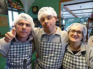 PROGETTO “FATTI UNA RISATA” (2013) Il progetto “Fatti una RISata” nasce, nel 2013, da un'idea di “Quelli del Sabato” e risulta tra i progetti approvati e finanziati dalla Provincia di Novara , all'interno del bando per la “Promozione e la valorizzazione del volontariato”. E' stato realizzato con il cofinanziamento dell'AVB, Associazione Volontariato Bellinzago e delle Acli Provinciali di Novara, il patrocinio del Comune di Bellinzago Novarese e della Camera di Commercio di Novara e la collaborazione dell'Associazione culturale “Artincircolo”. L'obiettivo del progetto “Fatti una RISata” è stato quello di far vivere a ragazzi diversamente abili esperienze formative e di socializzazione, importanti per migliorare capacità cognitive, abilità manuali e relazionali, attraverso un percorso articolato in laboratori sia creativi che produttivi, importanti per lo sviluppo della loro autonomia ed in vista di un loro possibile inserimento o reinserimento nel mondo del lavoro. Il progetto ha avuto come protagonisti 15 ragazzi provenienti da diversi comuni della provincia di Novara, facenti parte del gruppo “Quelli del Sabato”. Ragazzi con un'età compresa tra i 20 e 60 anni, entusiasti e desiderosi di mettersi in gioco. Insieme a loro cuochi e collaboratori di alcuni ristoranti che rappresentano eccellenze del territorio novarese e che hanno accettato forse la più difficile delle sfide in cucina. Il progetto si è aperto con una serie di incontri per conoscere il riso, le sue caratteristiche, le sue proprietà, i suoi utilizzi e ha previsto lo studio delle varie tipologie di riso in commercio attraverso un'analisi attenta del packaging, per pensare ad una nuova linea di risi, personalizzata, unica ed originale. L'idea finale? Creare 16 etichette, una per ogni ragazzo, più una per il gruppo, da abbinare a 16 tipologie di risi differenti, in cui associare caratteristiche personali e proprietà dei prodotti. Attraverso un laboratorio fotografico i ragazzi hanno, poi, posato per le immagini da apporre sulle etichette, ed in un laboratorio di comunicazione si sono descritti al fine di costruire un testo da riportare su ogni confezione. A seguire si è chiesto ai ragazzi di raccogliere ricette tradizionali a base di riso e poi tutti ai fornelli. I ragazzi sono stati divisi in gruppi da tre, ciascuno dei quali ha avuto la possibilità di vivere un'esperienza in una cucina professionale, per preparare 32 ricette a base di riso da inserire in un ricettario. Il progetto, nella sua fase conclusiva, ha previsto l'organizzazione di eventi degustazione, occasioni per proporre la nuova linea di risi, presentare il ricettario, e far sperimentare ai ragazzi anche il servizio ai tavoli.