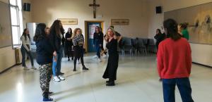 Il laboratorio teatrale del Liceo Classico e Linguistico Carlo Alberto ha potuto contare ormai da tre anni su due giovani capaci e preparati che collaborano con il Teatro Faraggiana: Scilla Gerace e Davide Petrillo. Formati da Lucilla Giagnoni sono gli esperti di scrittura teatrale, linguaggio drammaturgico e regia, capaci di guidare con abilità, serietà e leggerezza il gruppo. La partecipazione al progetto INTERREG, coordinata dalla professoressa Fiammetta Fazio, è, quindi, l'evoluzione naturale di un discorso di ormai quattro anni che quest'anno si consolida con la presenza di Lucilla Giagnoni per trenta ore in una parte del laboratorio: vero e proprio insegnamento sulla voce, il gesto, il ritmo e il tempo che fanno da supporto alla creazione e alla messa in scena del lavoro teatrale di quest'anno. La scelta è caduta su una commedia di Aristofone, Uccelli, una sorta di utopia al contrario che mette in luce tutte le criticità e debolezza della democrazia, in primis l'uso o abuso della parola, manipolatrice e menzognera.