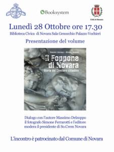 Il Foppone di Novara. Storia del cimitero cittadino, nato dalla collaborazione tra So.Crem (Società di Cremazione Novarese) nella figura del suo presidente Ezio Ferraris, cui è affidata la gestione culturale del cimitero urbano, e la casa editrice Booksystem di Francesca Giordano (studio editoriale con oltre trent’anni d’esperienza, particolarmente attento alla valorizzazione del territorio). La parola Foppone che compare nel titolo è un termine ormai in disuso, ma in qualche modo evocativo, con cui veniva designato il Cimitero comunale nei documenti relativi alle sue prime fasi di realizzazione (significa “grande fossa”, da cui la voce lombarda per “camposanto”). Il racconto delle sue origini e della sua evoluzione nel tempo (da 210 anni or sono fino ai giorni nostri) è affidato alla penna del giornalista Massimo Delzoppo, che ha ricostruito in una chiave interessante e di accessibile lettura la storia di quello che a molti potrebbe sembrare un tema atipico. Si tratta sicuramente di un viaggio inaspettato, suffragato da testimonianze d’epoca e notizie sorprendenti in un continuo richiamo tra presente e passato, che ci svela uno spaccato della società novarese e della sua popolazione nell’arco degli ultimi due secoli. Un viaggio che trae notevole arricchimento dal cospicuo corredo fotografico (costituito da un centinaio di immagini) di Simone Ferrarotti, che ha saputo catturare visuali inedite, scorci anche panoramici, intercalandoli a particolari suggestivi che svelano il lato delicato e commovente che un’opera scultorea, pur nata per commemorare un evento luttuoso, sa esprimere.