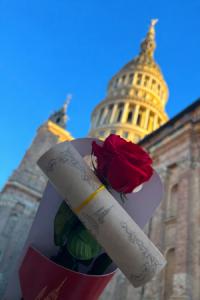 Il progetto trae ispirazione da uno degli episodi più significativi della tradizione gaudenziana: il Miracolo della Rosa, avvenuto – secondo le fonti – alla fine del IV secolo, quando Sant’Ambrogio di Milano, giunto a Novara in pieno inverno, fu accolto da San Gaudenzio e assistette alla miracolosa fioritura delle rose del giardino di Gaudenzio nel gelo più rigido, segno di provvidenza, carità e fede incrollabile. Proprio a questo miracolo si collega l’iniziativa: con un contributo di 20 euro, i cittadini potranno ricevere una rosa stabilizzata, vera a tutti gli effetti ma trattata per durare nel tempo, simbolo della rosa miracolosa che non appassisce, così come non mai sfiorire la cura per il nostro patrimonio. Un gesto semplice, ma dal valore profondo. Il contributo raccolto sarà interamente destinato al sostegno del Complesso Monumentale di San Gaudenzio, un patrimonio straordinario che oggi più che mai necessita dell’aiuto e della responsabilità condivisa della comunità novarese. La Basilica tibaldina, la Cupola antonelliana, il Campanile dell’Alfieri e gli spazi storici connessi richiedono interventi costanti di manutenzione, tutela e valorizzazione.