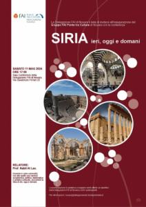 Novara - La Delegazione FAI di Novara è lieta di invitarvi alla conferenza “Siria, Cultura e Storia antica e recente”, che avrà luogo a Novara l’11 maggio alle ore 17 presso la Sala Conferenze della Delegazione in via Gaudenzio Ferrari 22. Durante questo evento il prof. Nabil Al Lao, docente in varie università con alle spalle una carriera accademica, politica, diplomatica ed artistico-culturale, racconterà la Siria di ieri, oggi e domani. La partecipazione è gratuita ed a seguire verrà offerto un aperitivo a tutti i partecipanti.
