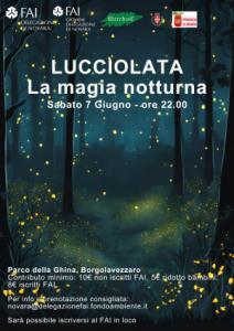 Borgolavezzaro - La Delegazione FAI di Novara ed il Gruppo Giovani sono lieti di invitarVi all’evento “Lucciolata - la magia notturna”, un’occasione unica per scoprire il fascino di questi insetti. L’iniziativa di sabato 7 giugno vuole far conoscere al pubblico il mondo degli animali notturni. In particolare, ci si concentrerà sulle lucciole, importanti insetti bioindicatori minacciati dalla perdita di habitat e dal cambiamento climatico. L’incontro si terrà alle ore 22:00 presso il Parco della Ghina (Borgolavezzaro, Novara - NO) ed i visitatori potranno partecipare ad una passeggiata notturna alla scoperta di lucciole, anfibi e animali notturni.