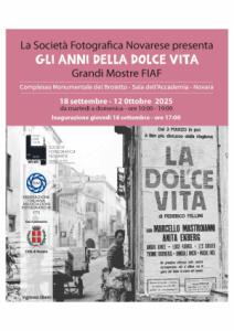 Novara - Tre associazioni novaresi: Società Fotografica Novarese, Autoamatori Club Novara e Pro Loco Novara APS, presentano un evento unico che farà immergere i visitatori negli anni del boom economico italiano, caratterizzato da un'intensa trasformazione sociale, culturale ed economica. L’Italia e la sua capitale divennero un centro di glamour e attrazione per artisti e personaggi famosi da tutto il mondo. Epoca di lusso, divertimento e spensieratezza, spesso associata al mondo del cinema, in particolare al film omonimo di Federico Fellini. Questo film del 1960, che tutti ricordiamo, divenne il simbolo di questo periodo, rappresentando la vita mondana e i suoi eccessi, ma anche le grandi trasformazioni dell'Italia del tempo. In questo contesto, l’evento costruito e organizzato dalle tre associazioni vuole ricordare proprio quell’ immaginario collettivo che ha segnato un'epoca. La Mostra, cuore dell’evento, è un percorso fotografico ideato e realizzato da FIAF – Federazione Italiana Associazioni Fotografiche - a cura di Fulvio Merlak, Claudio Pastrone e Giorgio Tani, tramite il responsabile di Area del Dipartimento grandi Mostre Roberto Montanari e proposto dalla Società Fotografica Novarese. Le Grandi Mostre FIAF sono le rassegne più importanti che la Federazione Italiana Associazioni Fotografiche progetta, organizza e propone per esposizioni in sedi di prestigio ed in ambito di manifestazioni di alto livello culturale ed organizzativo. Il proposito è di offrire ai cittadini uno sguardo diverso della Fotografia, attraverso la Fotografia d’Autore. “GLI ANNI DELLA DOLCE VITA” è una mostra di grande fascino che racconta il cambiamento avvenuto negli anni d’oro dell’Italia attraverso le immagini scattate dai maggiori fotografi italiani tra la fine degli anni ‘50 e il 1968: Berengo Gardin, De Biasi, Garolla, Palmas, Merisio, Lucas, Archivio Fiat e Agenzie fotografiche, consultabili anche nel Catalogo pubblicato dalla Federazione. Le fotografie sono presentate in due sezioni: L’amara vita (immagini che documentano l’emigrazione dal Sud, il lavoro in fabbrica, le periferie delle grandi città) e La dolce vita (il boom dell’automobile, i divertimenti dei giovani, passando attraverso immagini di auto, motorette, atelier di alcuni grandi sarti, personaggi dello spettacolo quali Fellini, De Sica e Pasolini, Mastroianni e Sophia Loren). L’esposizione raccoglie immagini in bianco e nero che raccontano il periodo post bellico dove il cambiamento è alla base della vita di ogni individuo in ambito economico, lavorativo, architettonico, tecnologico, e anche cinematografico. Gli Anni della dolce vita portano il visitatore a rivivere momenti indimenticabili tra gli anni ’50 e ’60 del Novecento, caratterizzati da numerose vicissitudini storiche e culturali.