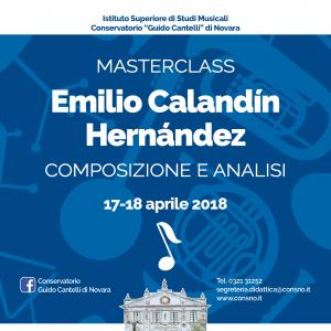 Emilio Calandín Hernández (Valencia, 1958) - avverte Marco Lasagna, a sua volta docente di Composizione presso il Conservatorio “Guido Cantelli” e coordinatore della master stessa - «svolgerà un’interessante parte di analisi storico musicologica sulla musica spagnola contemporanea, dal principio del XX secolo fino ai nostri giorni», quindi prenderà in considerazione sue stesse composizioni» comprendendo una «esposizione delle personali tematiche inerenti la sua attività compositiva». Inoltre egli riferirà in merito alle «influenze esercitate sulle sue opere dai suoi maestri sia spagnoli sia stranieri». Calandín Hernández sarà a disposizione infine - spiega ancora Lasagna - «per colloqui individuali o a piccoli gruppi volti ad approfondire le questioni che i nostri allievi gli porranno, oltre a sottoporgli le loro stesse composizioni».
