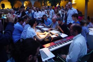 Il progetto, della compagnia Buji, ha due diverse anime: un live da palco con visual di Daniele Spanò e un laboratorio/concerto pensato per un tavolo di 20 e più partecipanti che avranno la possibilità di mettersi in gioco lavorando in gruppo a un progetto comune. Il tratto comune è sempre il disegno ritmico, in cui ciò che importa non è cosa si sta disegnando, ma piuttosto lasciarsi andare a un flusso creativo collettivo: un disegno che si può fare anche a occhi chiusi e che rimane sulla carta come una partitura a posteriori.