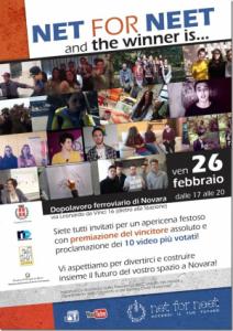 Novara - Con un momento di festa - un'apericena che si svolgerà venerdì 26 febbraio presso i locali del dopolavoro ferroviario in via Leonardo da Vinci 16 - giunge all'epilogo dfinale il contest “Net4Neet – Accendi il tuo futuro”. Sono stati 54 i video prodotti da oltre 200 partecipanti al progetto promosso dal Comune di Novara e finanziato dall'Anci. Oltre 3.500 gli studenti coinvolti. L'appuntamento di venerdì consentirà di proclamare i dieci vincitori, e soprattutto raccontare i prossimi passi per la realizzazione dell'obiettivo principale del progetto, cioè la realizzazione di uno spazio nel quale proprio i progetti selezionati possano triovare concreta attuazione. Appuntamento dalle 17 alle 20.