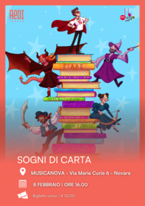 Novara - AEDI Teatro porta avanti, in collaborazione con Musicanova, la sua stagione "NOVAmente a teatro", presso la sala Musicanova in via Marie Curie 6 a Novara. Stavolta lo spettacolo, in scena domenica 8 febbraio alle ore 16, porta in scena una storia dedicata al pubblico di tutte le età: “Sogni di carta”, uno spettacolo emozionante e ricco di immaginazione, pensato per trasportare grandi e piccoli in un mondo dove i sogni prendono vita e le storie diventano realtà.