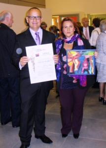 Novara - L'autore novarese Maurizio Asquini ha ricevuto il nono riconoscimento al suo primo romanzo "Dio ingannatore" questa volta in terra emiliana, proprio a Reggio Emilia, è giunto secondo classificato alla terza edizione del premio "Città del Tricolore" organizzato dall'Associazione A.R.N.O. che si occupa come strumento di aiuto a favore dei pazienti affetti da patologie Neuro-Oncolgiche. L'Autore ha ricevuto come premio un'opera della pittrice Elena Fontanesi (nella foto consegna il premio e il diploma all'autore). «A distanza di cinque anni dalla sua prima edizione» ha dichiarato Asquini soddisfatto di questo ennesimo riconoscimento «il romanzo riesce ancora a commuovere e a coinvolgere le giurie dei premi che partecipa, ma non è finita! Mi è da poco giunta notizia che nuovamente il mio "Dio ingannatore" ha vinto il Premio Internazionale Universum Aosta. A brevissimo mi scadranno i diritti con la casa editrice e sono alla ricerca di un editore che intenda ripubblicarlo.»