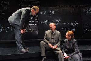 La trama: in un luogo che ricorda un'aula di fisica, immersi in un'atmosfera quasi irreale, tre persone, due uomini e una donna, parlano di cose successe in un lontano passato, cose avvenute tanto tempo prima, quando tutti e tre erano ancora vivi. Sono Niels Bohr (Orsini), sua moglie Margrethe (Lojodice) e Werner Heisenberg (Popolizio). Il loro tentativo è di chiarire che cosa avvenne nel lontano 1941 a Copenaghen quando improvvisamente il fisico tedesco Heisenberg fece visita al suo maestro Bohr in una Danimarca occupata dai nazisti. Entrambi coinvolti nella ricerca scientifica, ma su fronti opposti, probabilmente vicini ad un traguardo che avrebbe portato alla bomba atomica, i due scienziati ebbero una conversazione nel giardino della casa di Bohr, il soggetto di quella conversazione ancora oggi resta un mistero e per risolverlo la Storia ha avanzato svariate ipotesi. L'asse portante attorno al quale ruota lo spettacolo è dunque il motivo per cui l’allievo andò a Copenaghen a trovare il suo maestro. Essendo Heisenberg a capo del programma nucleare militare tedesco voleva, in nome della vecchia amicizia, offrire a Bohr, che era mezzo ebreo, l'appoggio politico della Gestapo in cambio di qualche segreto? O al contrario essendo mosso da scrupoli morali, anche se tormentato dalle conseguenze che sarebbero potute ricadere sul destino della sua patria martoriata e che lui amava pur non essendo nazista, tentava di rallentare il programma tedesco fornendo a Bohr, che era schierato con gli alleati, informazioni sull'applicazione dei fondamenti teorici della fissione? Su questi presupposti l'autore dà vita ad un appassionante groviglio in cui i piani temporali si sovrappongono, dando un valore universale alle questioni poste dai protagonisti. Fatto sta che le diverse ipotesi fatte all'epoca vengono qui enunciate una dopo l'altra e quindi vengono messi in scena diversi incontri tra i due fisici, con diversi andamenti. Viene quindi a tradursi metaforicamente, come struttura portante dell'impianto drammaturgico, quel Principio di Indeterminazione e di Complementarietà pronunciati molte volte nella pièce e così determinanti per l'elaborazione della teoria della relatività ad opera di Einstein. Non è possibile una sola verità oppure una sintesi efficace delle diverse verità perché una verità è semplicemente un punto di vista, il punto di vista di chi l'ha enunciata. Tutto è umano, niente è assoluto. Si possono avere solamente risposte indeterminate e quindi la somma degli scenari possibili è ciò vale anche per quell'incontro tra i due fisici. Il Novecento, così come la vita umana sono fatti di tante zone grigie, di tanto silenzio, ma finché esisterà l'uomo si cercherà sempre, in mezzo al vuoto che ci circonda e alla polvere sollevata, la traccia rarefatta di una particella di chiarezza e di verità che, comunque, ci salverà. Inutile dire che il grande valore del testo di Frayn, divenuto ormai un classico contemporaneo del teatro, non sarebbe emerso in modo così mirabile senza un trio di attori di grande spessore che sanno mettere la evidenza i diversi piani di lettura e interpretare i personaggi dando risalto alle loro infinite sfaccettature psicologiche.