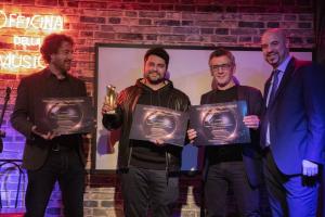 Qualche info sul Premio Eurocomunicazione - La prima Edizione del Premio Eurocomunicazione è stato un appuntamento tra Cinema e Musica; una sorta di vetrina dai contenuti molto speciali, selezionati e ritenuti di grande qualità da entrambi i portali che fanno capo al Direttore Giovanni De Negri e al suo staff (www.eurocomunicazione.eu www.eurocomunicazione.com) . A insindacabile scelta di questa importante realtà comunicativa con sede a Bruxelles, sono stati assegnati alcuni riconoscimenti a professionisti “tra cinema e musica”. Lo svolgimento del Premio ha permesso di conoscere più da vicino professionisti del settore musicale e cinematografico, con la presenza dei vincitori 2023 nelle categorie Canzone originale (“La mia queen” scritta da Fabrizio Campanelli/Vito Lo Re/Fabio Riccio per il film “Io sono l’abisso” di Donato Carrisi e cantata dal rapper Shoker MC) – Band Rivelazione (DY3-thx12-4432, l’ultra moderno duo artistico e virtuale che interagisce a diecimila kilometri di distanza, dal curioso nome-sigla, formato dall’italianissimo Davide Perico e dal giapponese Yoshimitsu4432 – il film “Dark Planet” in computeristica grafica con la loro musica è attualmente in lavorazione) – Evento dell’Anno (Music Day Roma, con l’organizzatore e direttore artistico Francesco Pozone) – Colonna Sonora (dal film L'Île du Pardon del regista Ridha Behi, con la musica di Marco Werba) – Voce Rivelazione (Lanfranco Carnacina, tra l’altro finalista al programma Rai1 The Voice Senior 2022, e straordinario interprete di “I feel the danger”, canzone che fa parte del film in lavorazione “Dig me no grave” di Ranjeet S. Marwa ) – Migliore Direttore Editoriale (Andrea Morandi di Hot Corn). Infine, Premio alla Memoria all’indimenticabile Carmelo La Bionda, che ad Officina della Musica ha fatto uno dei suoi ultimi concerti live. Tra musica suonata e cantata dal vivo, unitamente a proiezioni di contributi video su tutti i protagonisti della serata, si è trattato di una occasione per celebrare – a vario titolo e da varie angolazioni - un mondo alquanto affascinante: quello della Musica applicata alle Immagini. Coordinamento a cura della giornalista della Stampa Estera Lisa Bernardini. Fotografie e video a cura di Massimiliano Salvioni. Dirette streaming a cura di Eurocomunicazione.