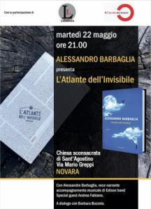Novara - Appuntamento con la presentazione d'esordio de "L'Atlante dell'Invisibile", nuovo romanzo di Alessandro Barbaglia, fissato per martedì 22 maggio alle 21 nell’ex chiesa di Sant’Agostino a Novara. Una serata di parole, musica e grandi emozioni.