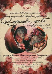 Novara - Un po' appuntamento culturale, un po' incontro tra amici e soprattutto evento inserito nel programma di Passio 2014: giovedì 8 maggio alle 18 presso l'Istituto tecnico-agrario 'Bonfantini' di Novara si tiene 'Quel germoglio giusto'. Si tratta dell'inaugurazione di un 'giardino spirituale'. Sono previste la lettura e la rappresentazione di brani biblici e letterari; voce di Lorena Ranieri (attrice). Segue una serata di fraternità nel Giardino spirituale in compagnia di don Franco Belloni e Maria Rosa Bordino.