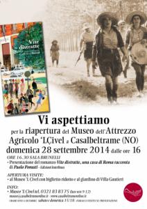 Casalbeltrame - Riapertura stagionale al pubblico del Museo Etnografico dell'Attrezzo Agricolo 'L Civel di Casalbeltrame, domenica 28 settembre a partire dalle ore 16: le guide museali saranno a disposizione per le visite al museo e ai giardini di Villa Gauteri. Alle ore 16.30 nella Sala Brunelli sarà presentato il libro "Vite distratte, una casa di Roma racconta" (ed. Interlinea) e il pubblico potrà incontrare l'autore Paolo Pomati. La presentazione sarà seguita da un rinfresco con brindisi inaugurale. Per l'occasione l'accesso al museo sarà con biglietto ridotto per tutti. Info: 339 1557215 - museo@casalbeltrameonline.it.