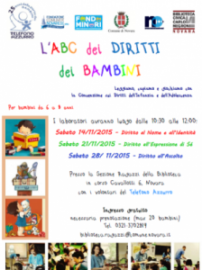Novara - Inizia Sabato 14 Novembre e proseguirà per tre sabati consecutivi il progetto “L’ABC dei Diritti dei Bambini” condotto da Telefono Azzurro Novara in collaborazione con la Biblioteca Civica Carlo Negroni – sezione ragazzi. I laboratori ‐ che avranno luogo sabato 14, sabato 21 e sabato 28 Novembre dalle 10:30 alle 12:00 – si propongono di avvicinare i bambini dai 6 agli 8 anni alla lettura e comprensione della Convenzione ONU sui Diritti dell’Infanzia e dell’Adolescenza. Attraverso brevi letture di gruppo e attività grafico‐manipolative i piccoli partecipanti verranno sensibilizzati su tre grandi temi toccati dalla Convenzione, ovvero: il diritto al nome e all’identità, il diritto all’espressione di sé e delle proprie emozioni, il diritto all’ascolto. In maniera autonoma e giocosa i bambini saranno dunque portati a riflettere sull’importanza di conoscere, rispettare e garantire questi diritti a sé stessi e agli altri senza alcuna discriminazione, assecondando i principi generali della Convenzione ONU. Pensato in occasione del ventiseisimo anniversario della Convenzione sui Diritti dell’Infanzia e dell’Adolescenza – promulgata dall’Assemblea Generale delle Nazioni Unite il 20 Novembre 1989 – il progetto verrà realizzato con l’importante sostegno della Fondazione Della Comunità del Novarese Onlus, attraverso l’erogazione di un contributo del Fondo Minori. Proprio grazie al generoso contributo della Fondazione e alla gentile ospitalità della Biblioteca, l’accesso ai laboratori sarà totalmente gratuito. Ricordiamo tuttavia l’iscrizione obbligatoria e il numero massimo di 20 partecipanti per incontro.
