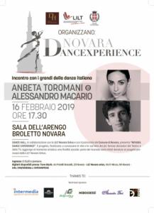 Novara - Torna il “Novara Dance Experience”, più precisamente le interviste del salotto novarese che, a partire dal gennaio 2017 ha accolto numerose grandi personalità del mondo della danza teatrale e televisiva. In attesa del Festival che si terrà presso il Teatro Coccia di Novara dal 12 al 15 giugno 2019, la nostra città continua a vestirsi di danza. Il prossimo 16 febbraio, dopo Carla Fracci, Luciana Savignano, Oriella Dorella, Lorella Cuccarini, Rossella Brescia, Luciano Cannito, Giuseppe Picone, Sabrina Brazzo e Andrea Volpintesta, saranno ospiti presso l’Arengo del Broletto alle 17:30, Anbeta Toromani e Alessandro Macario. Altre due bellissime storie di danza e vita, un incontro destinato a coinvolgere a appassionare, moderato, come di consueto, dal Direttore di Dance Hall News e Direttore artistico dell’evento, Francesco Borelli.