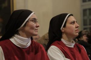 Novara - «Una salita al Calvario dipinta con le immagini dell’oggi». Così suor Maria Gloria Riva, fondatrice del monastero delle adoratrici perpetue del Santissimo Sacramento di Pietrarubbia, ha definito l’opera “Via Crucis per il terzo millennio”, del pittore polacco Jerzy Duda Gracz, nell’incontro di “Passio” di martedì 1 aprile nella sala Maddalena del Palazzo dei Vescovi. «Siamo nella vigilia del giorno in cui, nove anni fa, moriva il beato Giovanni Paolo II – ha ricordato Pietro Toscani, presidente de La Nuova Regaldi e organizzatore dell’incontro, insieme con Luciana Graceffo e Laura Ganzerla –.Ed è proprio grazie all’incontro con questo papa, nel suo primo viaggio in terra polacca, che l’autore si è convertito alla fede cristiana». Una terra sempre presente nei dipinti della Via Crucis di Gracz, attraverso i personaggi che vi sono ritratti e i simboli della sua storia recente. Così lo stesso Giovanni Paolo II, padre Popiełuszko – ucciso dal regime comunista negli anni ’80 – e Massimiliano Kolbe – martire ad Auschwitz – compaiono nelle tele, e i pali stessi dei reticolati del campo di concentramento formano il letto su cui il Cristo viene deposto dopo la morte. «Gesù cammina con il popolo di Polonia – spiega suor Maria Gloria –, ma in questi quadri i suoi piedi non si vedono mai. Si mescolano con i nostri, sono i piedi che camminano con noi e che sostengono il peso stesso del mondo». I dipinti si fanno denuncia di una società e di una Chiesa che troppo spesso è connivente con il potere, e che diviene cieca e incapace di farsi voce dei deboli. E sono loro – bambini, anziani, una prostituta – che dai quadri volgono lo sguardo agli spettatori, chiamandoli a condividere il loro dramma. «I piedi di Cristo compaiono infine nella crocifissione, enormi e in primo piano, come i piedi che hanno percorso un cammino di millenni», spiega suor Maria Gloria. È l’ultimo, doloroso episodio di una storia che si apre ai colori della speranza con le scene della Risurrezione e dell’ascensione, evocate dalle parole di Giovanni Paolo II, lette da Bob Rattazzi, allenatore di basket impegnato nell’integrazione tra ragazzi portatori di handicap e normodotati, e protagonista della serata insieme con suor Maria Gloria: in esse «Gesù mostra che l’umanità alla fine della vita non è votata alla all’immersione nell’oscurità, al vuoto esistenziale dissoluzione e alla voragine del nulla, ma è votata all’incontro con il Padre».