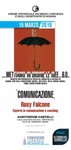 «Proprio COMUNICAZIONE è la parola chiave di questa edizione e siamo certi che Rosy Falcone saprà catturare l’attenzione del pubblico, come è sempre accaduto in passato, tanto da trasformare “Mettiamo in Ordine le idee” in un appuntamento fisso del panorama culturale novarese» commenta il Presidente dell’Ordine dei medici, Federico D’Andrea.